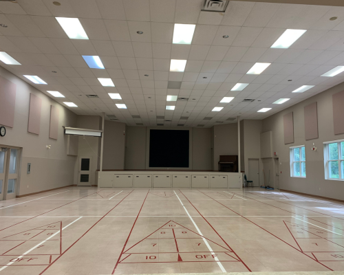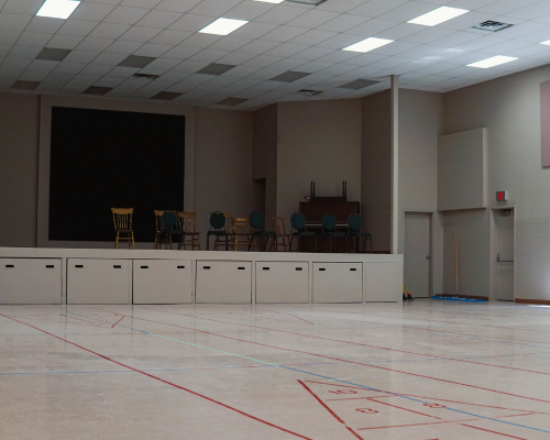 Equipment: 10 8-foot rectangular tables, 8 6-foot rectangular tables, 12 4-foot round tables, 9 6-foot round, 208 chairs, kitchen with standard flatware, utensils, dishes, pots and pans, 2 high chairs
