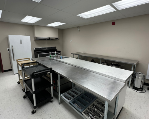 Equipment: 15 rectangular tables, 15 circular tables, 75 folding chairs, kitchen with standard flatware, utensils, dishes, pots and pans